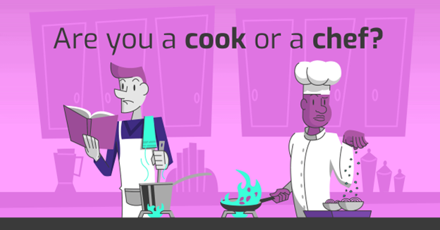 In the culinary world, there's a critical distinction between being a chef and being a cook. A chef is someone who reasons from first principles, like a scientist in a kitchen, experimenting with raw ingredients to create something new and unique. On the other hand, a cook is someone who follows established recipes, relying on tried and tested methods without much room for innovation.